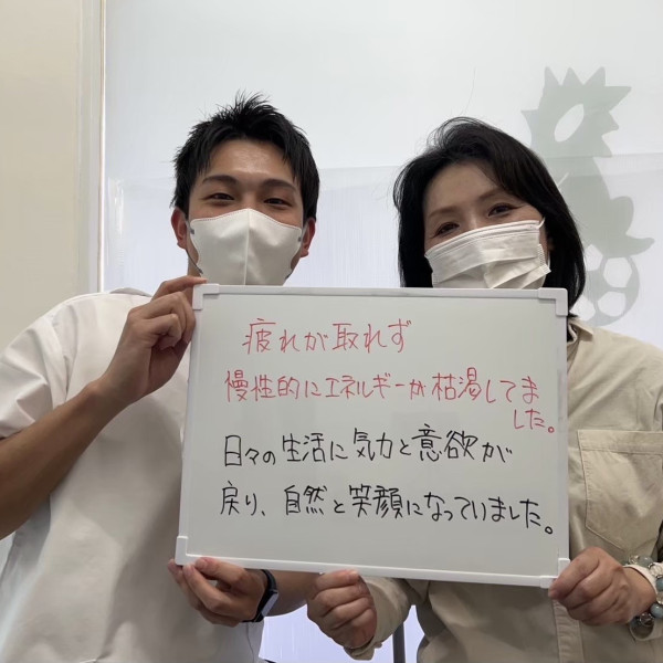 体の緊張が解けたことで心も体も軽くなり、自然と笑顔がこぼれている自分がいました。日々の生活にも気力・意欲が戻ってきました!
